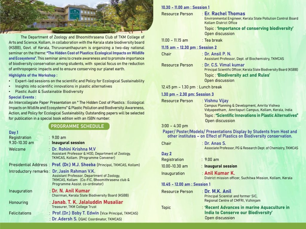 National Seminar on The Hidden Cost of Plastic: Ecological Impact on Wildlife and Ecosystem